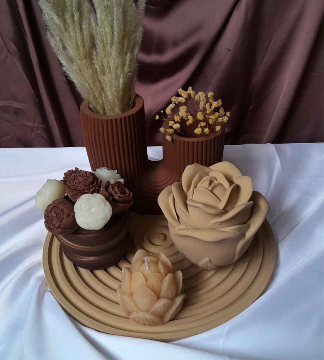 A handcrafted décor arrangement designed to bring warmth, texture, and personality to your home. Each piece is thoughtfully selected in complementary tones of beige, cocoa, and caramel, creating a balanced visual harmony.