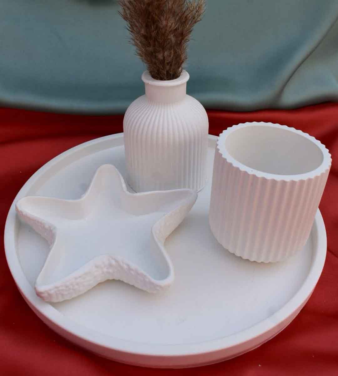 The Serene White Decor Set is designed for lovers of minimal elegance. With ocean-inspired details and clean lines, it’s perfect for styling your vanity, coffee table, or gifting to someone special.