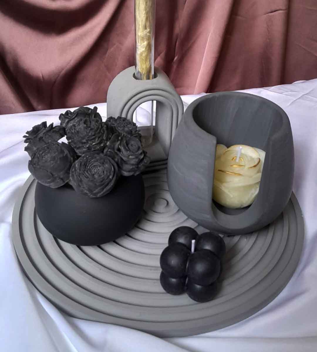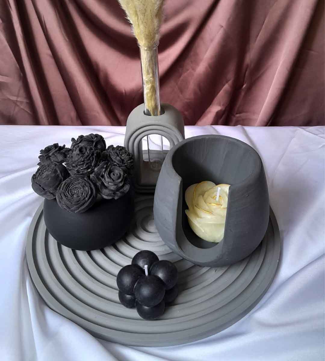 The StoneBloom Set is a modern fusion of sculpted art and natural elegance. Designed in calming stone-inspired greys and deep charcoal tones, this collection brings a sense of balance, texture, and quiet luxury to any space.